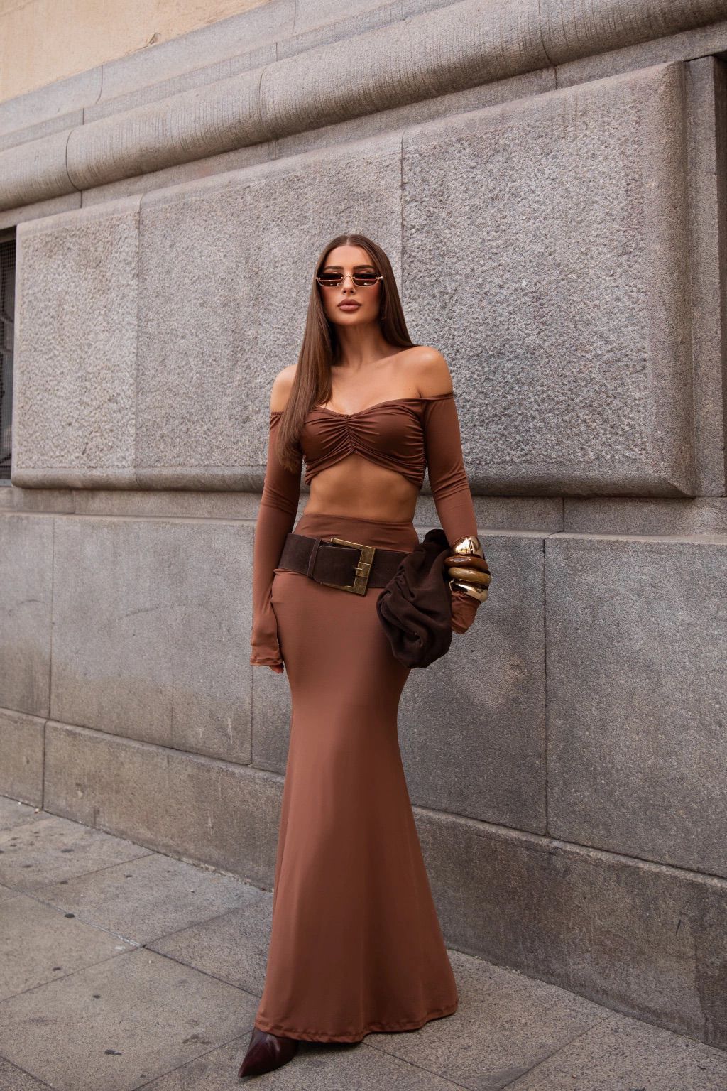 O Conjunto Samira é a escolha perfeita para mulheres que apreciam sofisticação e detalhes únicos. Composto por um cropped manga longa com drapeado frente e costas, e uma saia sereia, este conjunto é elegante e versátil. O tecido Suplex Premium garante conforto e evita transparências. Disponível em tamanhos de 38 a 42, é a união de estilo e conforto em uma só peça!